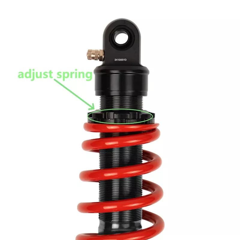 Shock Absorber ມີຄຸນສົມບັດ preload ພາກຮຽນ spring ທີ່ສາມາດປັບໄດ້, ເຮັດໃຫ້ຜູ້ຂັບຂີ່ສາມາດດັດແປງ, ປັບລົງເພື່ອເຮັດໃຫ້ພາກຮຽນ spring ແຂງຂຶ້ນ, ປັບຂຶ້ນເພື່ອເຮັດໃຫ້ພາກຮຽນ spring ອ່ອນລົງ.
